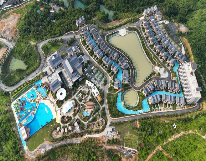 坐落于光明村的龙泰翁山源温泉度假村,作为韶关市重点项目,总投资约4亿元,按五星级标准打造国内首个海战主题温泉园区、408间带独立泡池的主题客房、600米碧波泳道、国际会议中心及研学基地,可同时容纳近千人入住。自营业以来,周末单日接待约650人,是一处宜居、宜业、宜养、宜游的康养胜地。