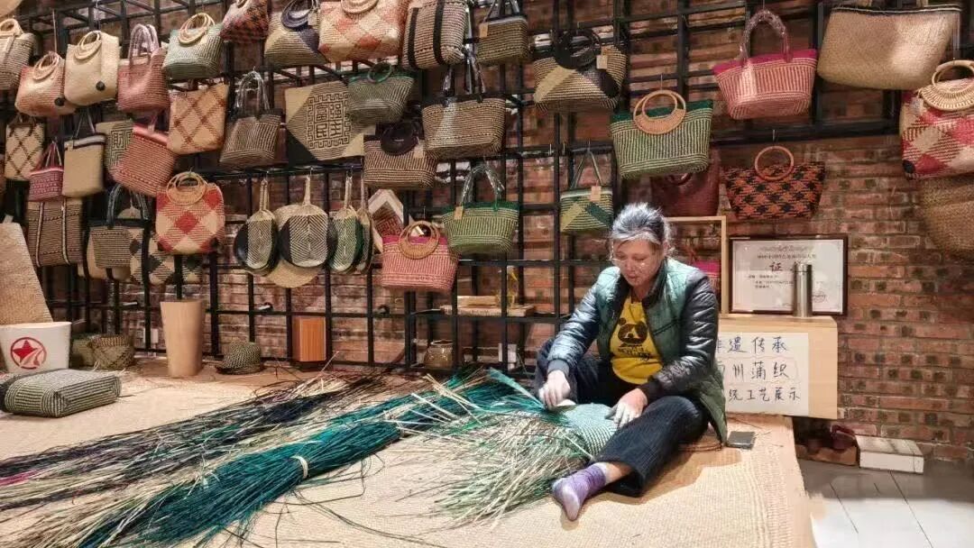 走进展场,一处充满自然气息的绿色展位格外引人注目——“雷州蒲织技艺”在此静静绽放。