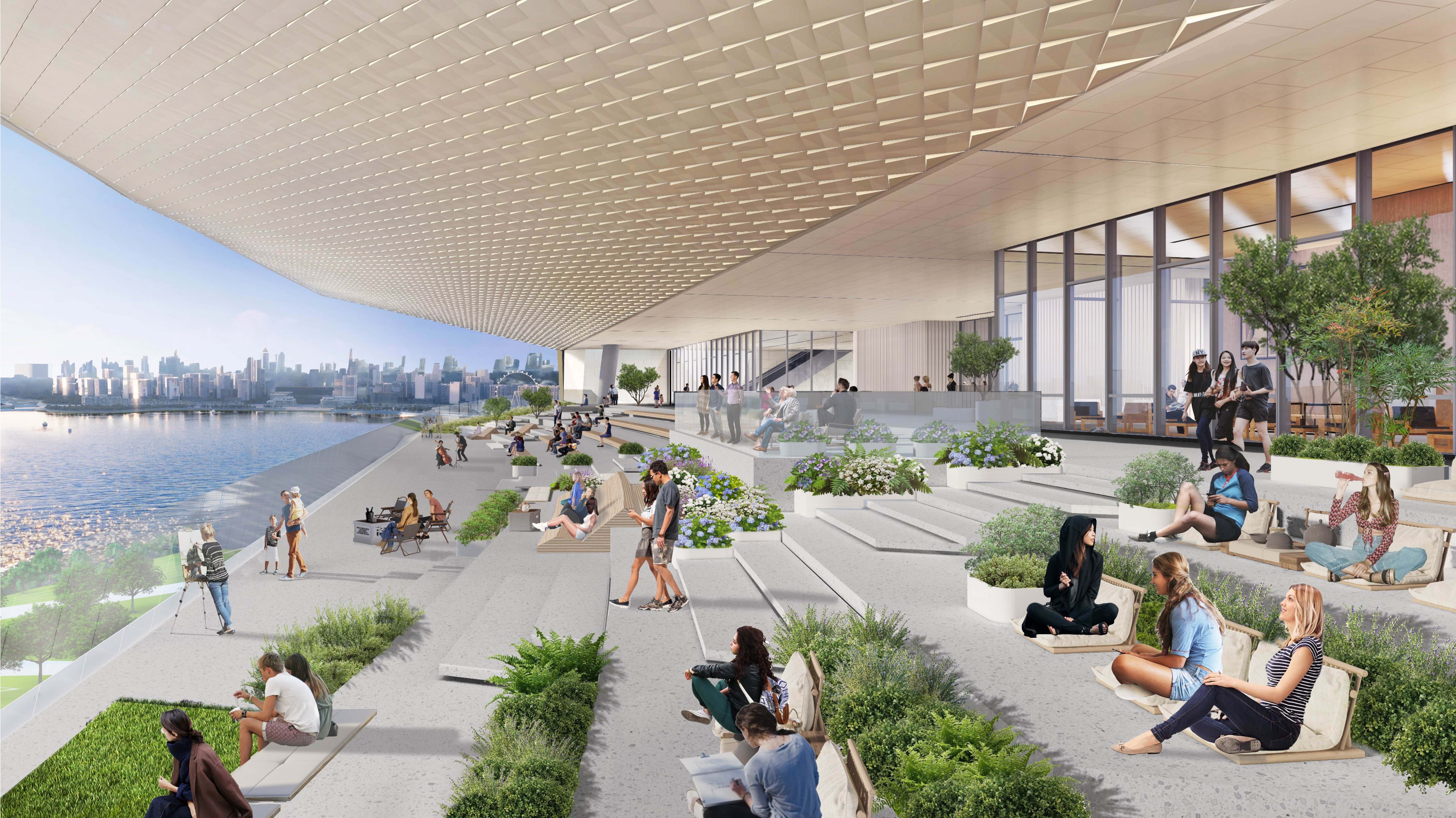 “五层平台是博物馆的一大亮点,在2至4层看完文物后,市民游客可以走上五层南北两侧的‘山海剧场’。将企鹅岛、欢乐海岸摩天轮等深圳地标,与环湾海景、大小南山等自然风光尽收眼底。”张振辉说。