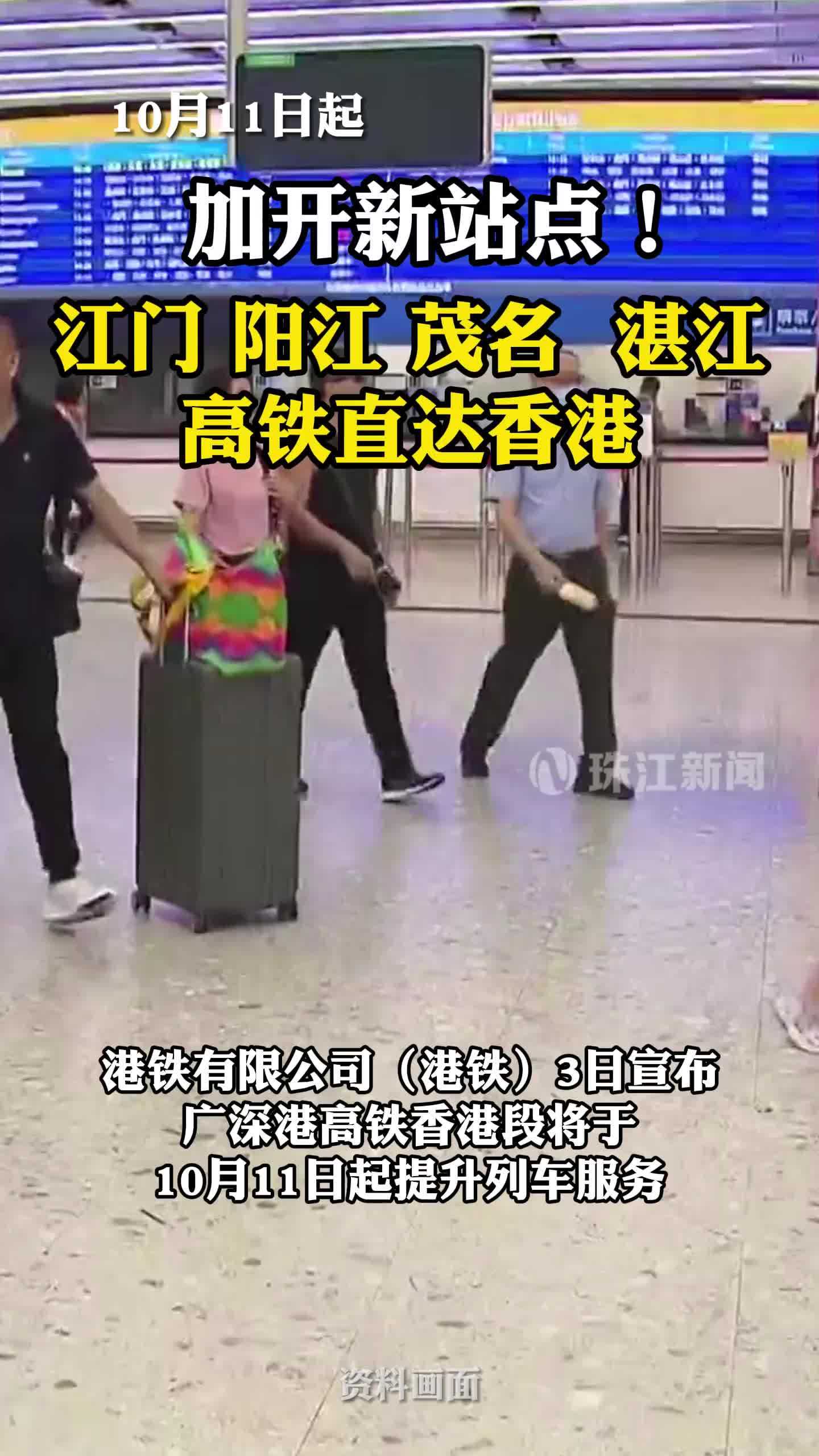 加开新站点!江门、阳江、茂名、湛江11日起高铁直达香港