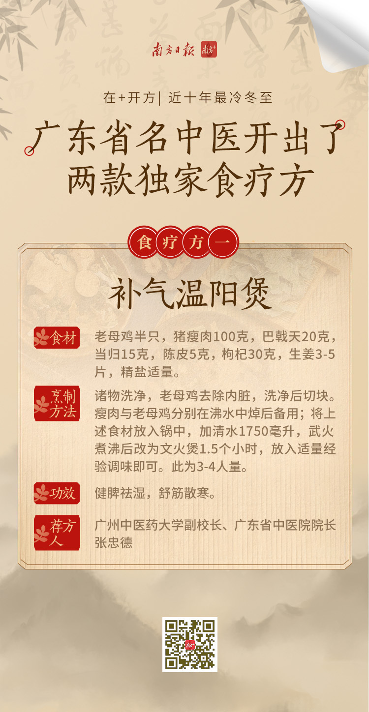 顺应时令特点,遵循“冬藏”的养生之道,科学、合理、适度养生。广州中医药大学副校长、广东省中医院院长张忠德,广东省中医院副院长杨志敏为大家开出两道独家食疗方。