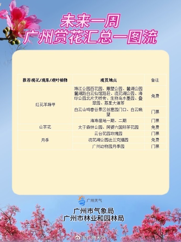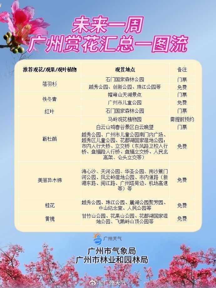 虽有寒潮,但作为花城,广州的各种花卉也开得格外艳,趁着这个周末去看看吧。