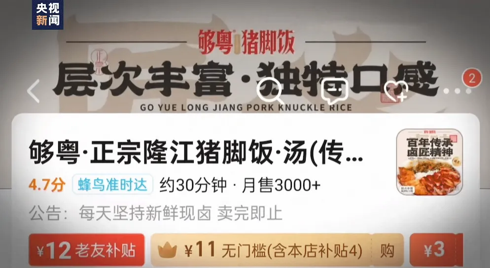 外卖平台上,一家叫“够粤·正宗隆江猪脚饭·汤”的品牌连锁餐厅,视频里展现的制作过程干净卫生,菜单的配图色泽鲜美。