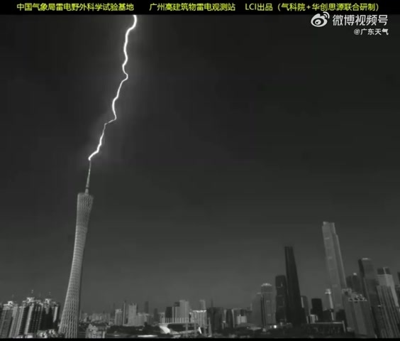 20日19时-20时,广州塔频繁接闪,闪电通道成像系统精准捕获6次闪电事件光学影像。