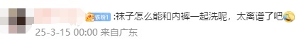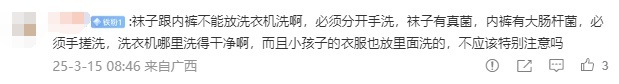 节目播出后,话题#戚薇不能接受袜子内裤一起洗#冲上热搜。在相关视频评论区,不少网友表达了自己的习惯,讨论热烈。