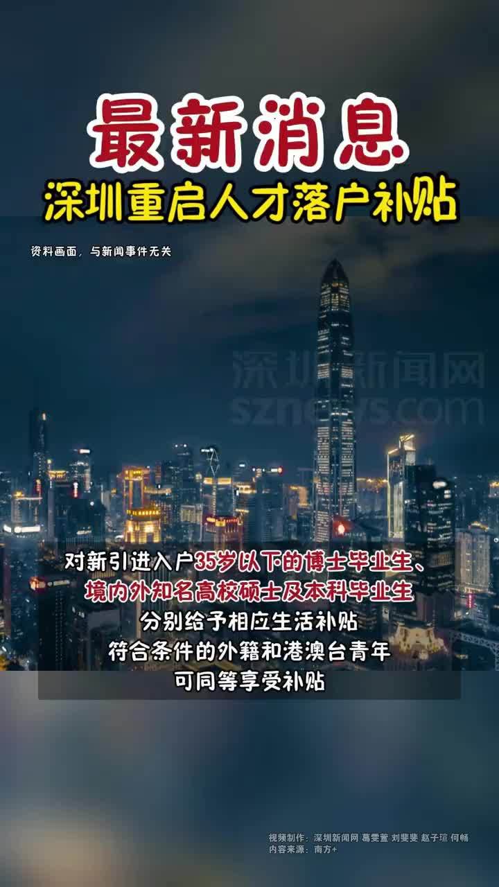深圳出台人才新政,重启人才落户补贴 视频来源:深圳新闻网